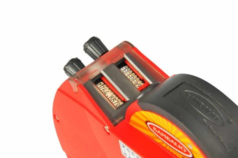 - SMART DESIGN : These price labelers have a top handle and trigger below it that can be squeezed to release a fresh ink roll printed price label. On the top, there is a plastic cover that can be flipped open to load blank rolls.