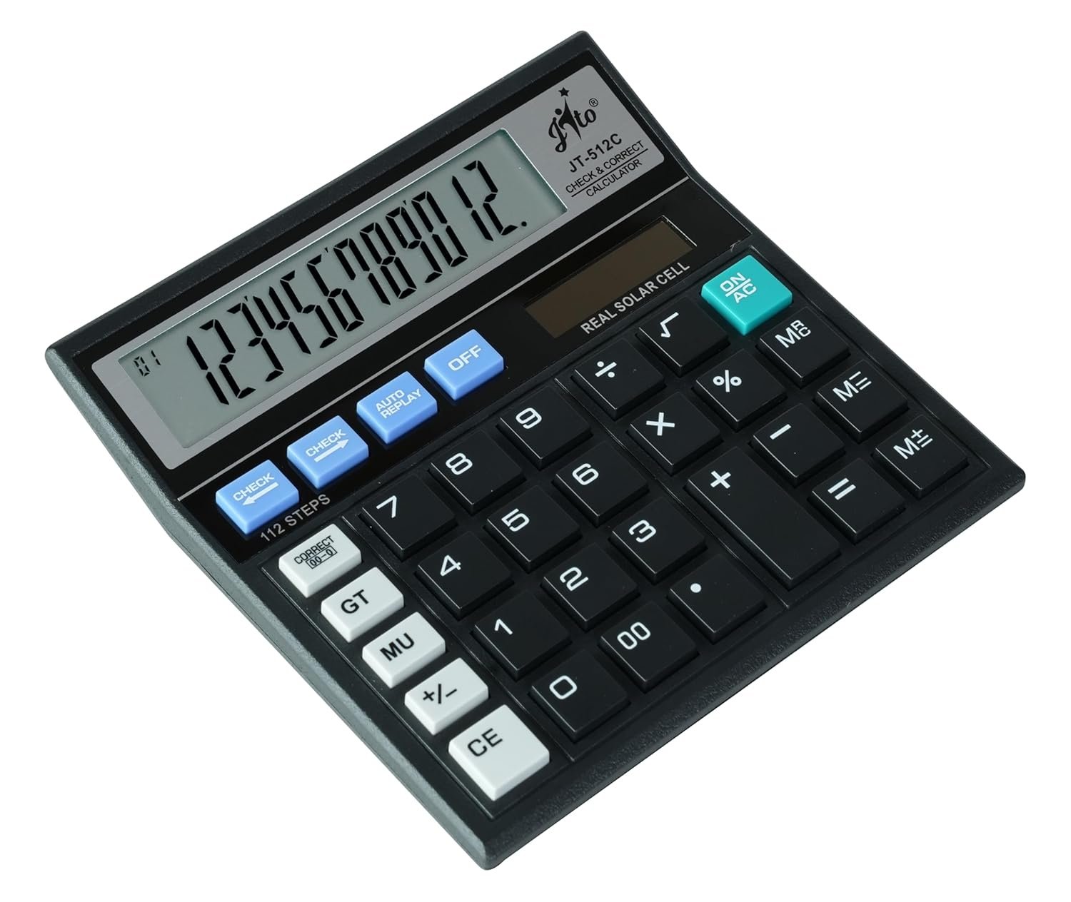 Jito 12 Digits JT-512C Black Electronic Calculator 18 Months Warranty with Double Check Function
